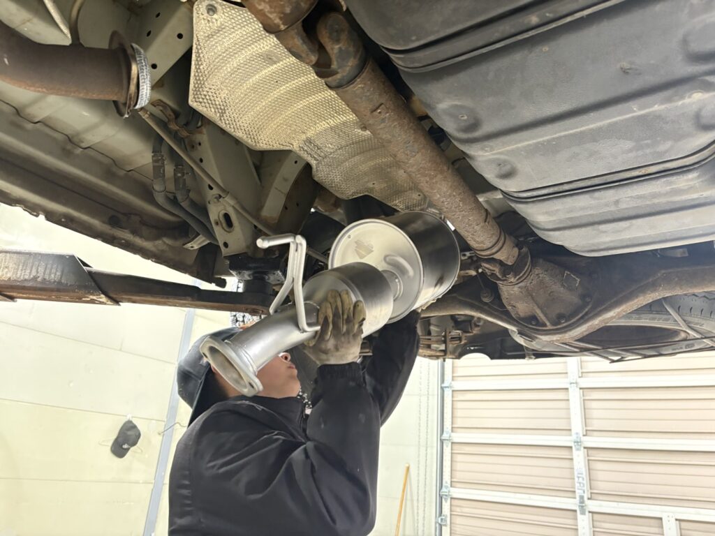 マフラー交換作業中~(/・ω・)/