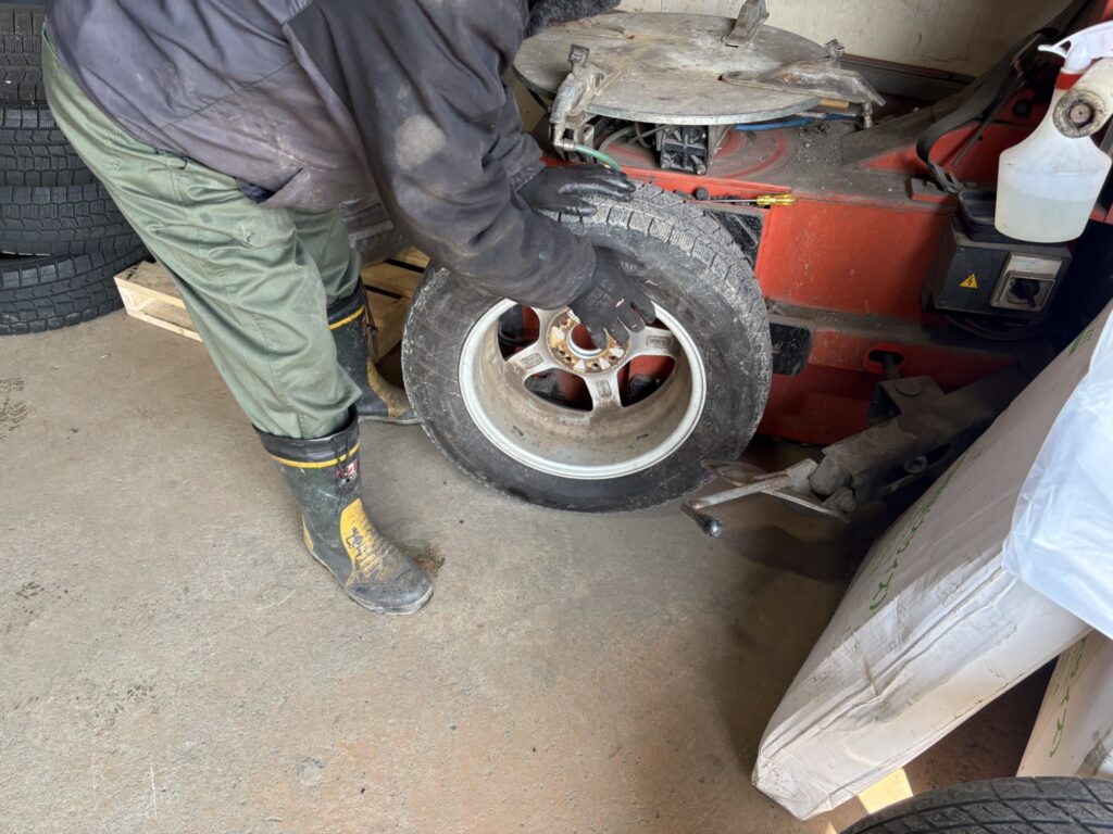 タイヤ組み換え作業中~(/・ω・)/