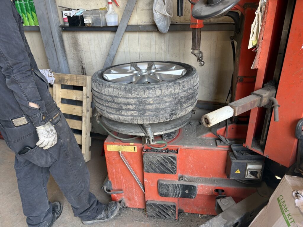 こちらはタイヤ組み換え作業中~(/・ω・)/