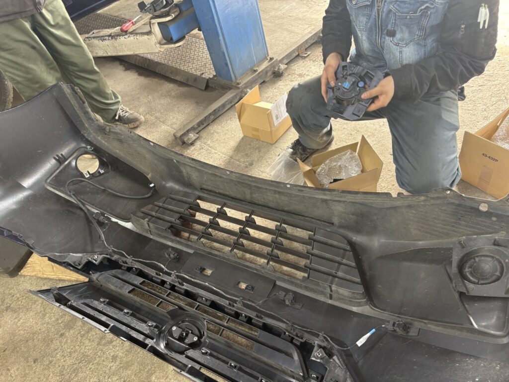 フォグランプ取付作業中~(/・ω・)/