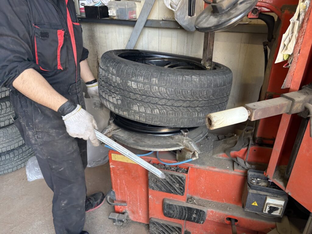 タイヤ組み換え交換作業中~(/・ω・)/
